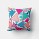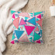 Mosaïque géométrique moderne du milieu du siècle de triangles surlignés dans les tons turquoise / paon, corail, pêche et fuchsia sur un arrière - plan blanc jeter l'oreiller