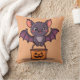 Le collectionneur de bonbons le plus mignon. Ce coussin est parfait pour les petits monstres et les adultes, avec une chauve-souris amicale et un seau citrouille souriant. Un accessoire charmant et amusant pour la saison éffrayante !