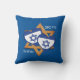 Stylish TU B'AV Saint Valentin Jour de l'Amour Jetez l'oreiller à TEKHELET BLUE avec CUSTOMIZABLE TEXTE pour les hommes et les femmes qui célèbrent la Saint-Valentin juive de Tu B'Av, également connu comme la Journée juive de l'Amour. Le dessin montre l'étoile de David drapeau d'Israël en forme de deux coeurs, avec une plus grande étoile de David dans l'arrière - plan. Le texte hébreu (en haut) est traduit 15ème de Av. Tout le texte est CUSTOMIZABLE afin que vous puissiez le remplacer par des noms ou d'autres textes (ou supprimer).