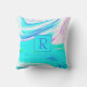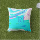 Coussin Turquoise Bleu Rose Blanc Abstrait Vagues Monogram