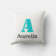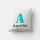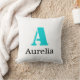 Coussin Turquoise Élégant Initial Noir Nom | Moderne