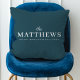 Un coussin de vacances photo moderne et élégant avec votre nom de famille présenté dans la typographie classique jumelé avec une police manuscrite en blanc une magnifique couleur vert turquoise foncé bleu au verso. Un design amusant et minimal pour se démarquer de la foule cette saison de noël!