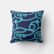 Cet oreiller de lancement est doté d'un motif de ligne abstrait à répétition, illustré et fluide. Les couleurs sont bleues. Parfait pour la décoration sur la plage, la côte ou la mer.