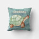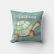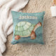 La tortue joueuse est prête à s'amuser dans la chambre de votre enfant. Créez un coussin personnalisé avec le nom de votre enfant. Tortue à l'aquarelle avec arrière - plan rustique en métal.
