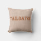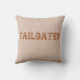 Thème football lancer oreiller caractéristiques "Tailgater" dans une police de football brun en détresse sur un arrière - plan burlap. Parfait pour les grottes humaines