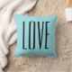 C'est un design élégant et chic carré avec accent coussin. Cette caractéristique coussin est une couleur vert aqua, bleu turquoise et bleu caraïbe avec le texte "LOVE" en noir.