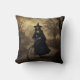 Une sorcière à vélo Jetez l'oreiller. © Dark Heart Desires. Cet oreiller de lancer a une image gothique d'une sorcière à vélo dans la campagne.