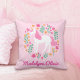 This personalized unicorn pillow features a cute whimsical pink unicorn design with orange and pink flowers. C'est un design double side. Personalize it with a name.