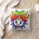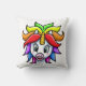 Ce coussin a une licorne arc-en-ciel dessus.