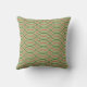 Cet oreiller de lancer a un design Boho de vagues vertes et orange sur un champ de vert clair.