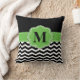Coussin noir et vert de monogramme de chevron. Manière mignonne et d'amusement de liven vers le haut de toute pièce.