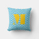 Lumineux Aqua ivoire et gris moderne Monogramme Zig Zag Motif Jeu d'oreiller