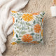 Pillow featuring a vibrant pattern of orange slices and green leaves on a white background. The fresh design evokes a lively and cheerful tone.