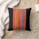 Coussin d'inspiration rétro avec des rayures d'orange, noir avec des touches de bleu, jaune et blanc