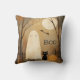 Un coussin de Halloween confortable avec un fantôme, chat noir, citrouille et pleine lune dans les tons chauds de l'automne. Les oeuvres d'art peintes à la main, de style vintage, apportent une touche humoristique mais fantaisiste à la décoration saisonnière. Parfait pour la décoration gothique d'Halloween.
