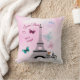 J'aime Paris au printemps ; photo branchée de la Tour Eiffel avec de jolis papillons, VTT vintage et timbre postal sur un arrière - plan brumeux rose ceinturé. Un charmant coussin qui mettra en valeur n'importe quel type de chambre, que ce soit une chambre ou un coin salon.