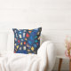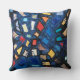 Design original inspiré de ma broderie unique. Veuillez noter que l'oreiller à jetons n'est imprimé que, la broderie n'est simulée que dans des oeuvres d'art. Vous pouvez donc avoir une belle reproduction d'art textile à un prix très abordable et plus facile à entretenir. Cela pourrait devenir une pièce de déco maison de déclaration à votre maison ou de grandes idées créatives pour un cadeau, certainement admiré par le destinataire. Ma broderie faisait partie d'une collection inspirée des verres colorés des cathédrales gothiques de l'Europe médiévale du Moyen Âge. Est coloré, audacieux, impressionnant, avec de minuscules formes géométriques en rouge, orange, jaune, bleu cyan, turquoise, turquoise, blanc sur bleu foncé bleu marine arrière - plan.