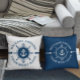Coussin Voigée bleu et blanc marine blanc et ancre de bate
