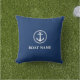 Nom du bateau Ancre de mer Coussin d'oreiller à jet bleu.