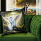 Coussin avec une peinture d'un chat ange blanc dans une forêt luxuriante. Un bonheur paradisiaque !