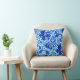 Jetez l'oreiller dans un vintage imprimé floral William Morris de lys stylisés et d'Irises, numériquement rehaussés et colorés, dans les tons bleu cobalt profond, bleu cérulean, et bleu ciel clair sur un arrière - plan blanc