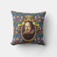 The Bard - L'oeuvre originale de ZoeSPEAK sur ce Throw Pillow présente un portrait de l'auteur William Shakespeare. Le portrait est dans un cadre orné d'or ovale avec des rubans et une couronne sur le dessus. Le papier peint arrière - plan bleu est orné de châteaux, de couronnes de rois et de fleurs jaunes et rouges, rappelant l'romantisme, la tragédie et la comédie de ses pièces de théâtre et de poésie.