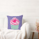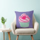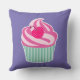 Art graphique / illustration d'un cupcake rose délicieux avec des tourbillons de glaçage sur le dessus et une jolie cerise à pois rose chaud. La base est à rayures vertes et blanches. Arrière - plan violet clair.