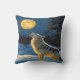 Coussin Wolf Howling sous Pleine lune dans le paysage hive