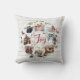 Ajouté festif à votre décor de vacances, cet oreiller à thème de Noël présente huit de vos photos préférées disposées dans un design rond de couronne accentué par le feuillage vert aquarelle, les cônes de pin et les baies rouges saintes sur un arrière - plan blanc arceau de bois de ferme. "Joy" apparaît au centre dans la typographie festive rouge à main lettrée en brosse script. Personnalisez ce montage photo de vacances unique avec votre nom de famille sur le dos, encerclé par une couronne assortie.