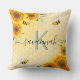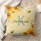 Un arrière - plan d'or avec un motif de nid d'abeilles et des abeilles souriantes joyeuses. Décoré de tournesols jaunes et oranges, de fleurs et de verdure. Personnalisez et votre nom et votre lettre monogramme. Le nom est écrit avec un script de style moderne et à grande main avec des swashes. Pour que les swashes ne suppriment que le nom de l'échantillon, laissez les espaces ou émoticônes devant et après le nom. Lettres noires et vertes.