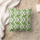 Coussin avec mon zigzag design en vert et beige avec des flèches ondulées pointant vers le haut et vers le bas.