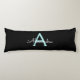 Noir et Aqua Bleu Turquoise Simple Script Monogramme Nom Oreiller corporel. La coussin fait le cadeau parfait pour 16 ans, mariage, douche nuptiale, baby shower ou bachelorette pour quelqu'un décorant sa chambre en or rose.