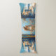 Unique, artistique, de grande valeur, bleu, sable et or esthétique, double face, coussin de corps à thème côtier, avec un bar de plage une belle dame blonde sur le devant, et de l'illustration de bar côtier sur le dos, avec un éclat d'or avec texte personnalisé. Modifiez facilement le texte par défaut en cliquant sur le bouton Personnaliser et obtenez-le pour vous-même, votre entreprise ou pour vos proches. #piccogrande #bleu #coussin #chambre #dorsache #grossesse