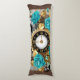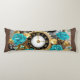 Coussins Longs Steampunk Clock and Turquoise Roses on Striped