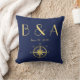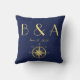 Coussins de mariage nautique bleu monogramme avec boussole en or et texte personnalisable - vous pouvez changer la date du mariage et ajouter des initiales