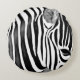 Zebra gros plan en noir et blanc - motif funky imprimé sur un coussin rond - art original par Alma Wad .Les articles correspondants sont disponibles .. Conception avant et arrière.