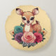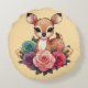 Coussins Ronds Bébé cerf avec Roses et feuillage vert