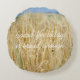 Coussin rond avec une photo de paysage rural d'été. Nous voyons des champs de blé jaune sous le ciel bleu. Un accent rustique à votre espace de vie, cadeau élégant pour les amoureux de style champêtre. Vous pouvez remplacer le texte "Pain pour aujourd'hui c'est assez de pain" (Edward McKendree Bounds) par votre propre message ou le supprimer. Pour d'autres modifications (style de police, couleur de police, position du texte), cliquez sur "Modifier la conception".