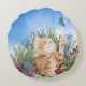 Coussins Ronds Chaton gingembre jouant avec un papillon