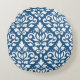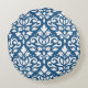 Coussins Ronds Défiler Damask Lg Ptn Blanc sur Dk Blue
