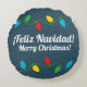Feliz Navidad! Un diseño de cojines navideños en español e inglés. El diseño es muy festivo, con luces navideñas.