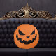 Ce coussin d'Halloween orange éffrayant présente un cool souriant visage Jack-o'-lantern. Décor de maison hantée effrayant.