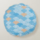Coussins Ronds Japanese Waves Pattern Light Blue Beige White