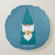 Un magicien moderne et heureux gnome tenant une lampe magique sur Coussin rond bleu saphir.