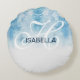 Dusty Blue Winter Script Calligraphie Monogramme Coussin rond | Meilleur cadeau pour elle