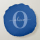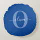 Coussins Ronds Monogramme personnalisé Nom du script Bleu Blanc