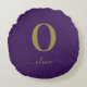 Coussins Ronds Monogramme Script Nom Personnalisé Violet Et Or