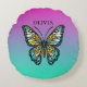 Joli oreiller à lancer personnalisé en verre violet et turquoise papillon.