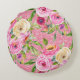 Cet oreiller à jetons est doté d'une parties scintillant rose glam en toile de fond pour ce motif fleuri rose luxuriant et féminin dans les tons rose, pêche et crème.