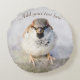 Image d'un moineau à l'air sérieux. Personnalisable . Vous pouvez modifier ou supprimer le texte modèle selon vos souhaits et selon vos besoins. Coussin ronde en coton.